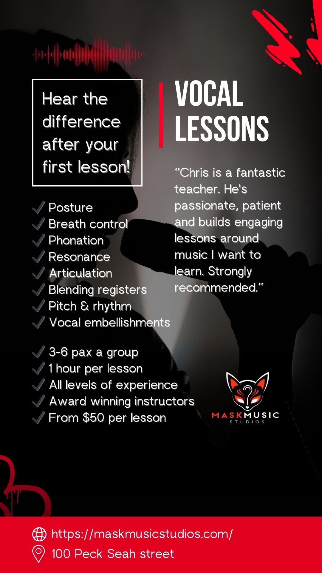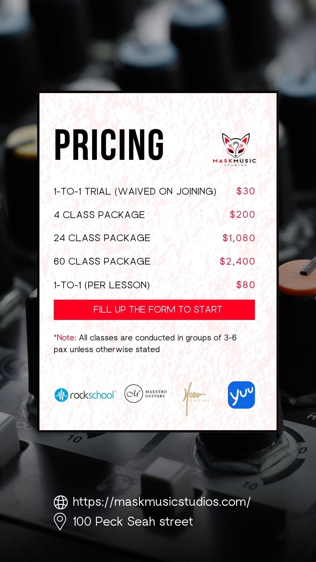 Mask Music Studios is a Singapore-based music school offering personalised lessons in piano, guitar, ukulele, vocal training, and music theory. Founded with a strong emphasis on patient teaching and structured learning, the studio is run by dedicated instructors who tailor each lesson to suit the student’s pace, goals, and skill level. Whether someone is a complete beginner or preparing for graded exams, Mask Music Studios provides a supportive, confidence-building environment that helps students grow musically.